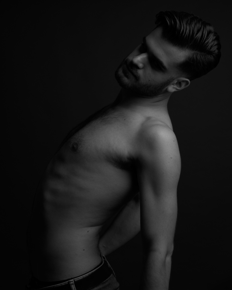 Series of black and white studio portraits.